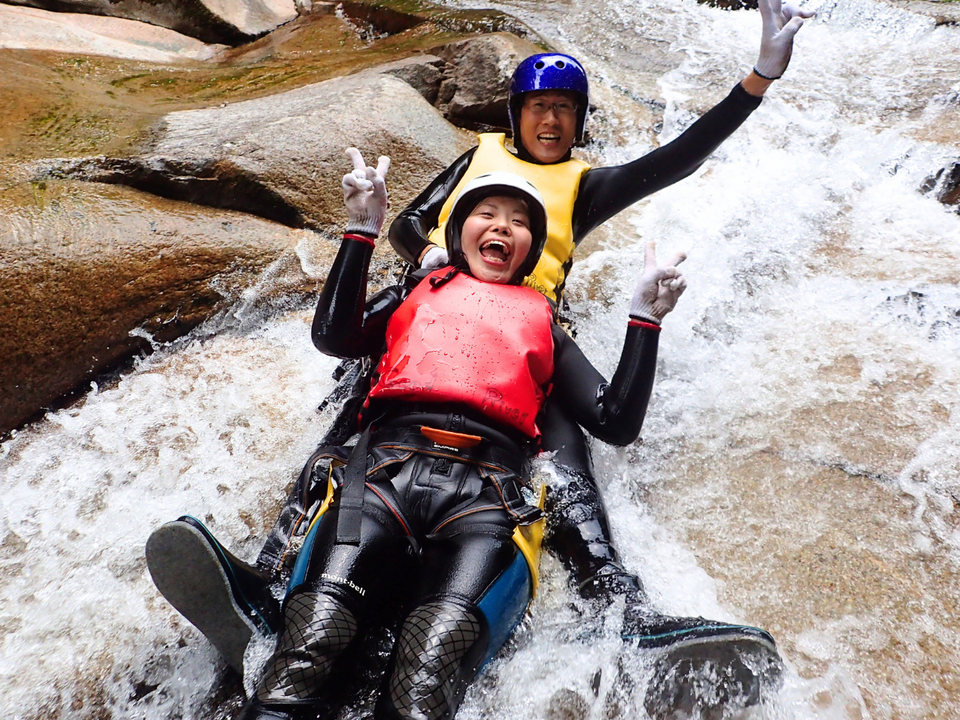 滝滑り、滝つぼダイブ、ロープ降り(ラッペリング)など、ダイナミックな体験がお楽しみいただけます。