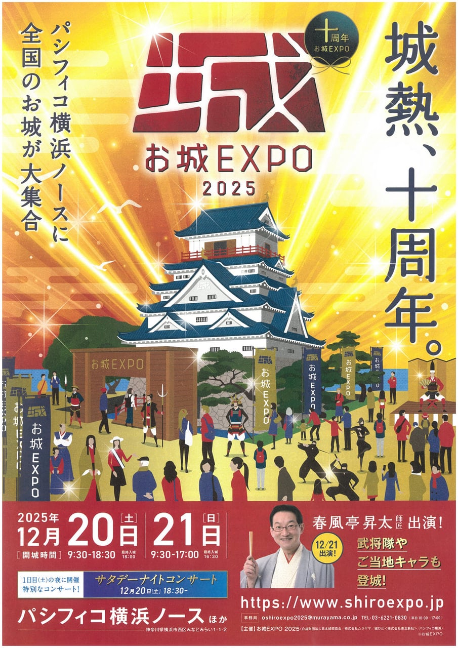 【12/20-21】お城EXPO2025に「宇和島城」出陣! 2025年11月21日(金曜日) お知らせ 2025年12月20日(土)ー21日(日) パシフィコ横浜にてお城EXPO2025が開催!全国のお城が大集合するEXPOに宇和島城も出陣いたします✨ 今年お城EXPOが10周年を迎えるということで、様々なイベントが開催予定♬ テーマ展示にステージイベント、お城のスペシャリストたちによる10周年記念シンポジウムも開催! 1日目土曜日の夜には、サタデーナイトコンサートも行われます♬ 皆さまぜひ、宇和島城ブースに足をお運びくださいね! 詳しい情報はお城EXPO HPをご確認ください。 お知らせ一覧