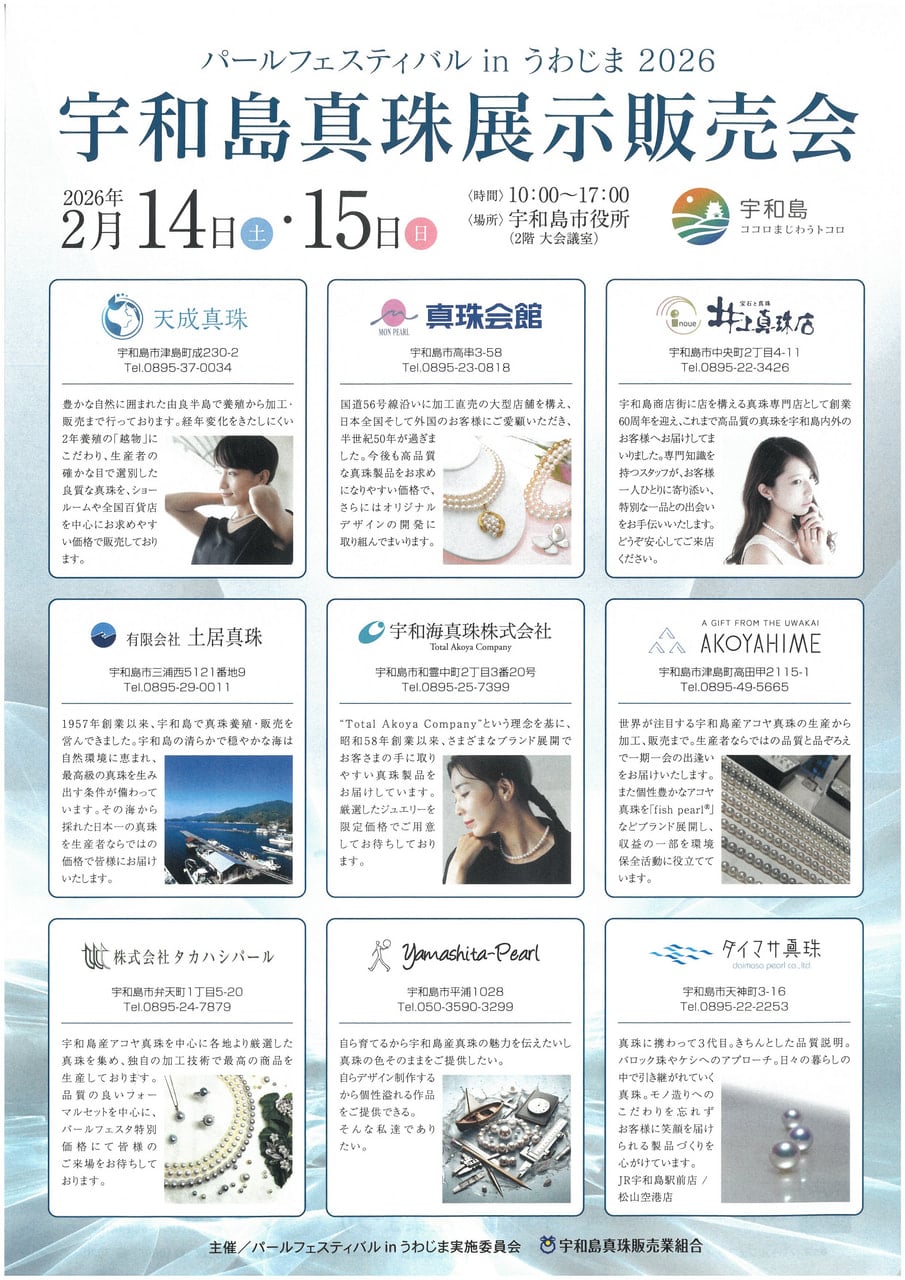 2026年2月14日(土)-15日(日) 宇和島市役所2階 大会議室にて、パールフェスティバル2026が開催されます♬