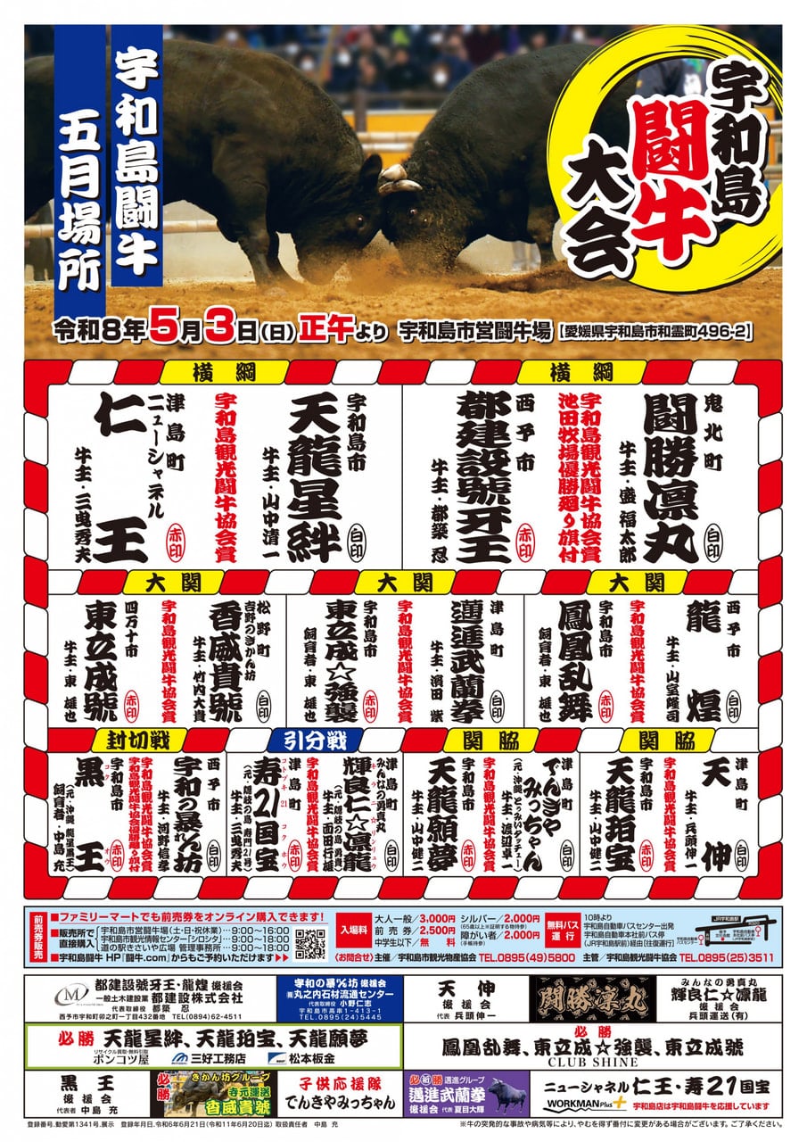 2026年5月3日(日) 宇和島定期闘牛大会 五月場所が開催されます!